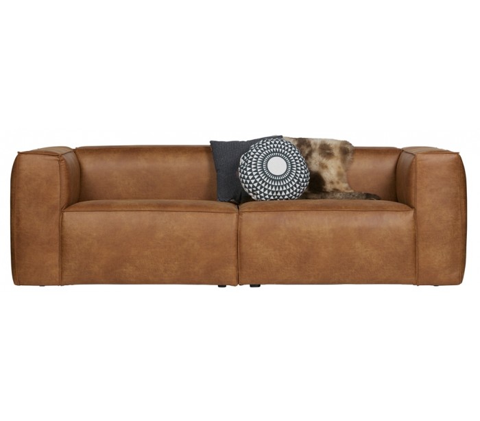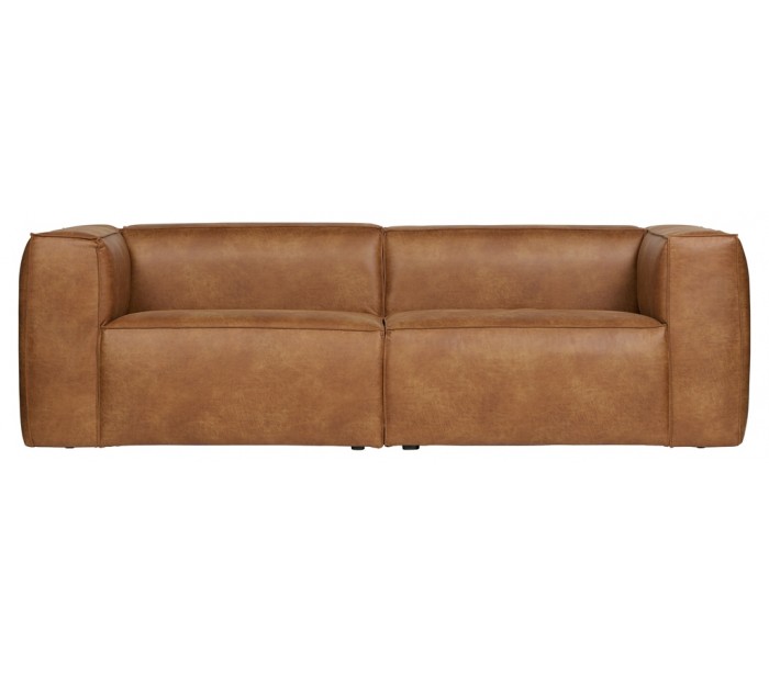 Moderne 3,5 personers sofa i et lækkert design af vintage cognacfarvet læder. Sofaen måler 246 x 96 cm og er polstret med højkvalitets skum og nosag fjedre.
