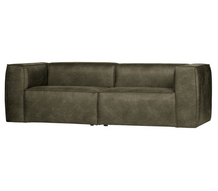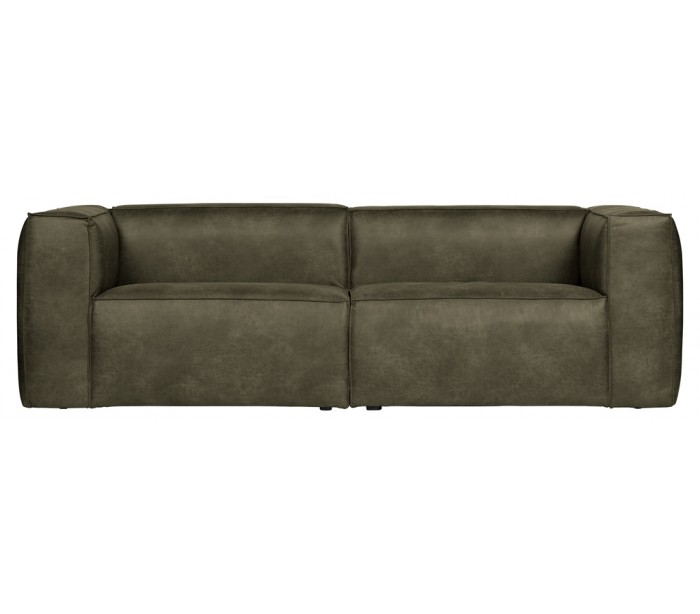 Moderne 3,5 personers sofa i et lækkert design af vintage armygrønt læder. Sofaen måler 246 x 96 cm og er polstret med højkvalitets skum og nosag fjedre.