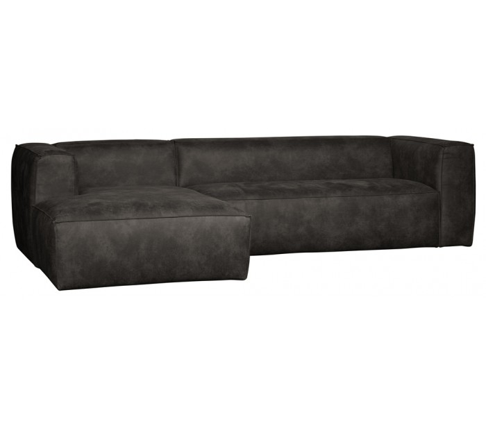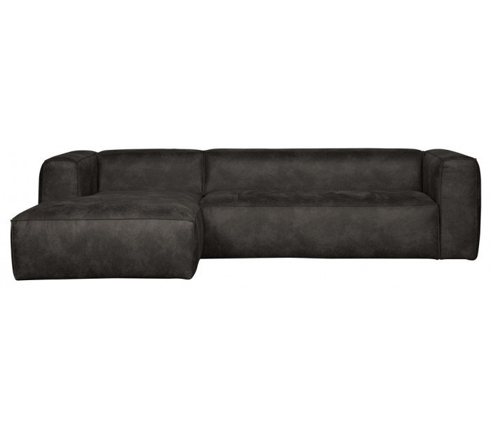 Moderne hjørnesofa med chaiselong, udført i et lækkert design af læder i vintage sort. Sofaen måler 305 x 175 cm. Sofaen er polstret med højkvalitets skum og nosag fjedre.