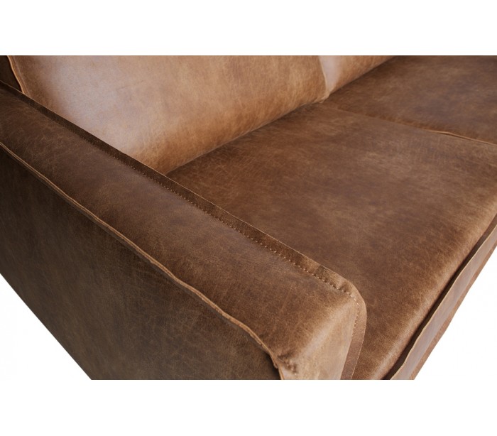 Moderne hjørnesofa i højrevendt udgave, udført i et flot design af vintage cognac læder. Sofaen måler 266 x 213 cm i bredde og dybde og er polstret med højkvalitets skum.