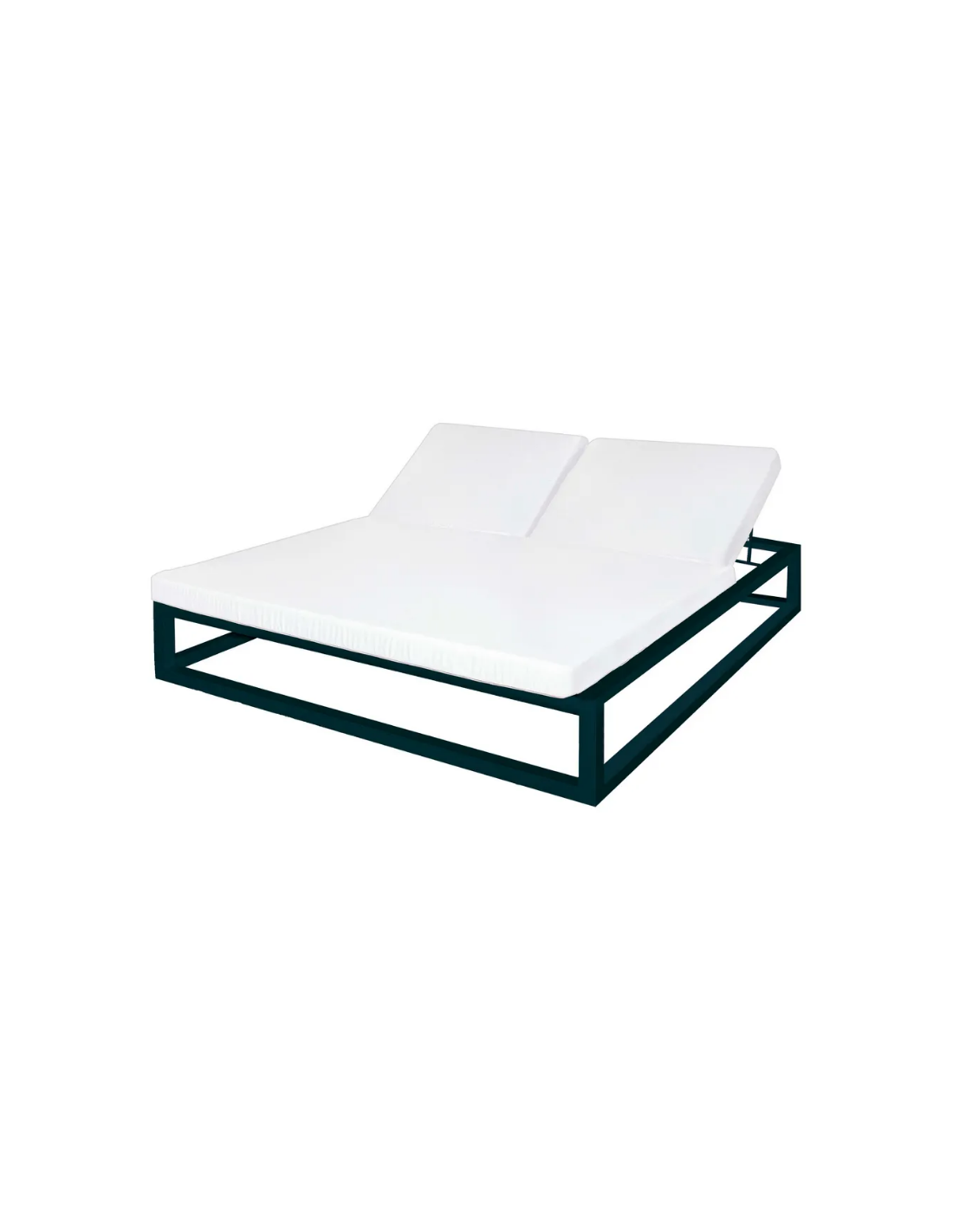 Dobbelt solseng udført i et design af antracitlakeret aluminium og med tykke komfortable hynder i hvidt vandafvisende olefin (vandafvisende, ikke vandtæt). Solsengen har flere indstillinger for ryggen. Solsengen tåler at stå ude hele sommeren og er resistent overfor regn og fugt.