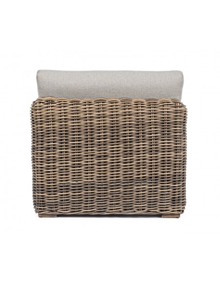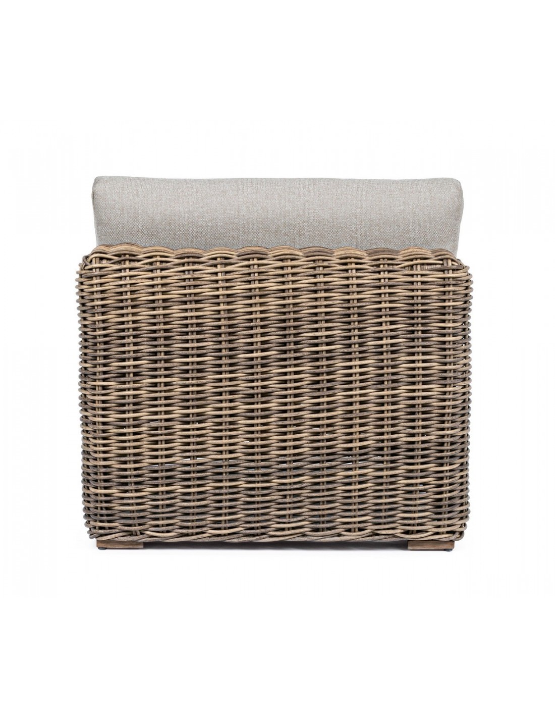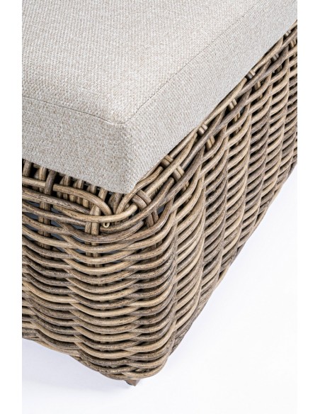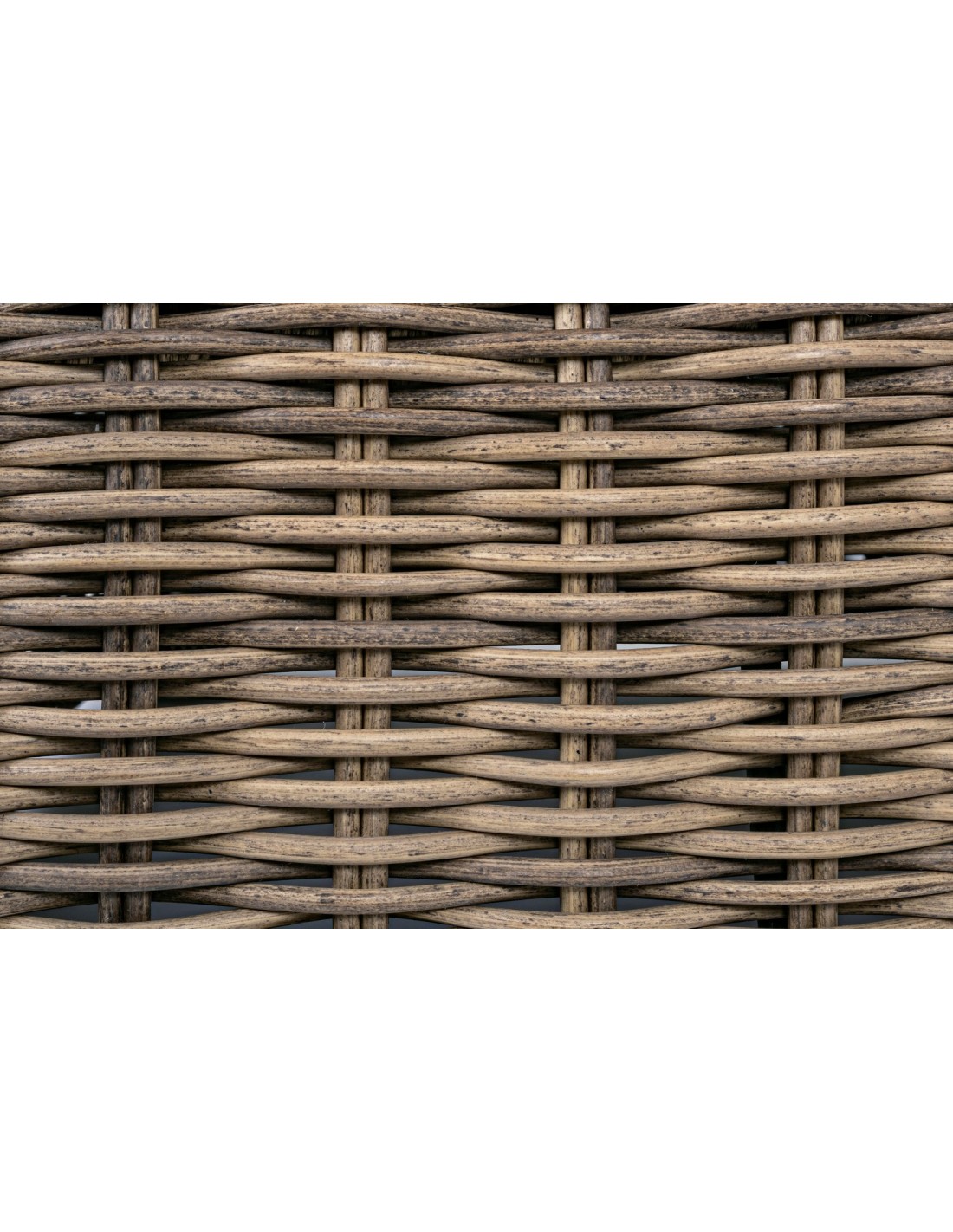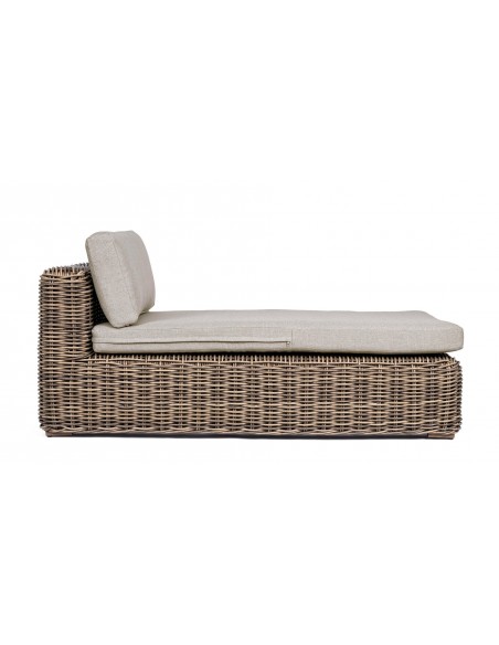 Solseng udført i et design af syntetisk rattan med skelet i rustfri aluminium. Hynde er fremstillet i gråbrun olefin, der er vandafvisende (ikke vandtæt). Solsengen måler 64 - 79 cm i højden og 163 cm i bredden.