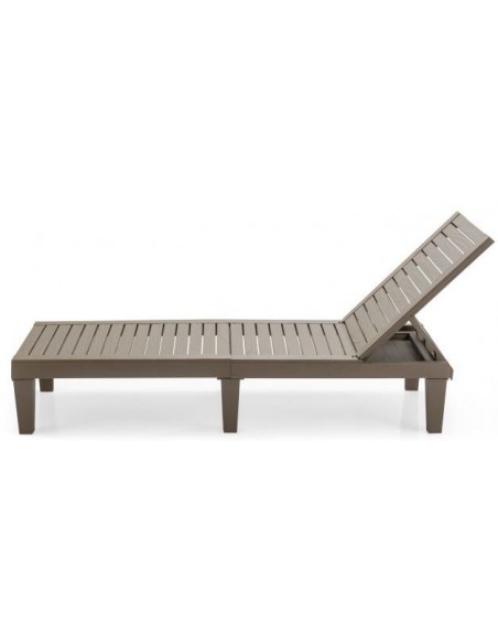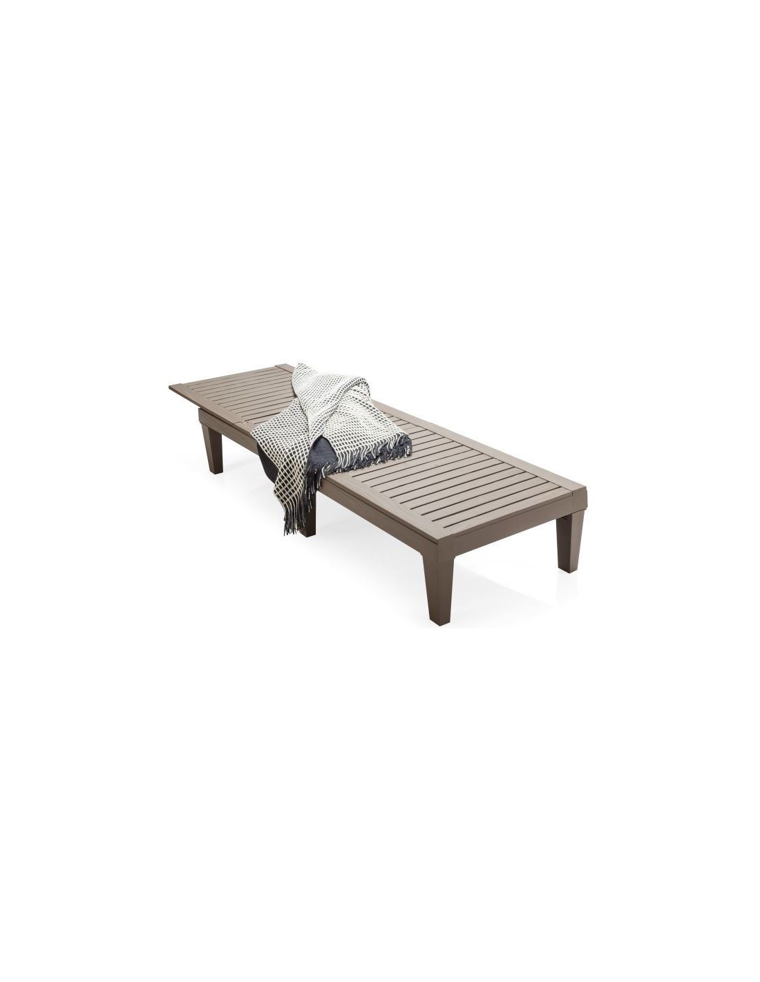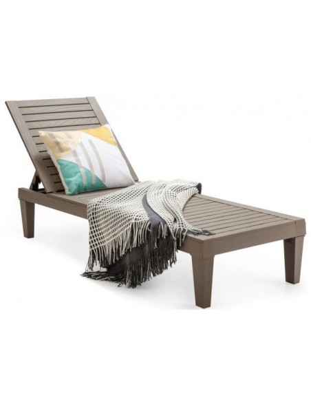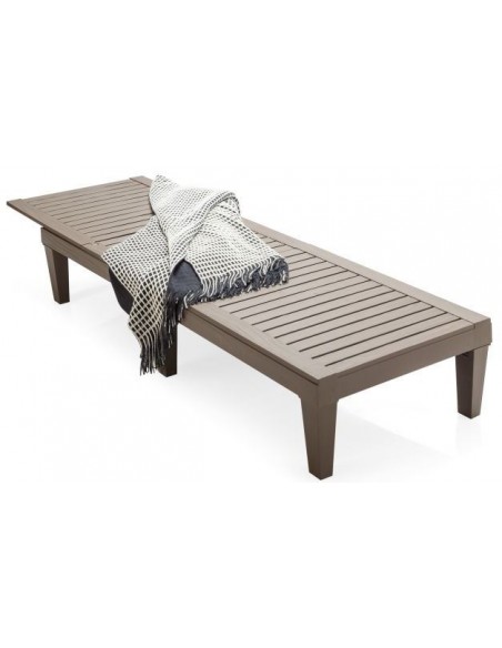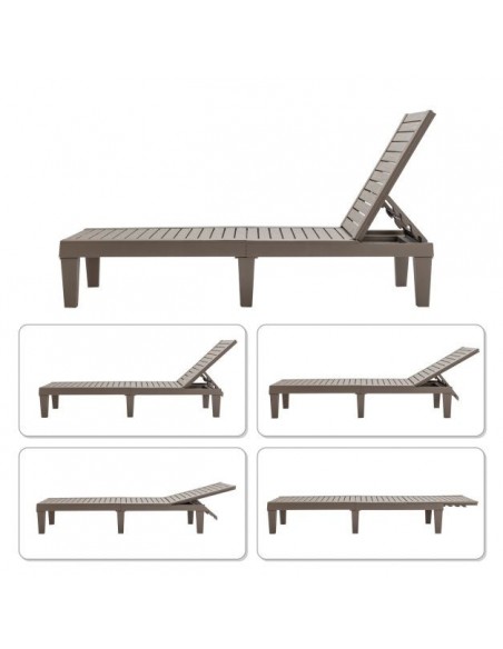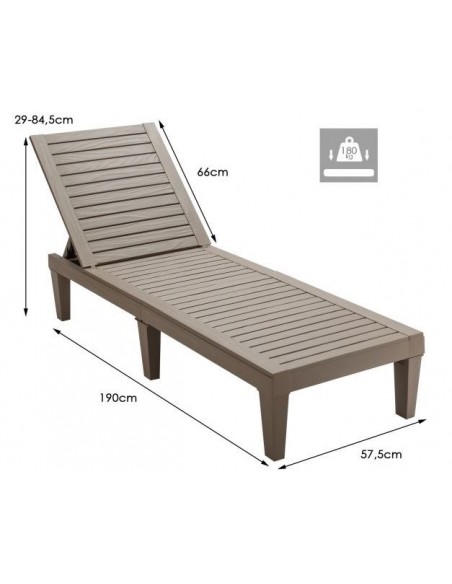 Solseng udført i et design af brun polypropylene. Solsengen måler 29 - 84,5 cm i højden og 190 x 57,5 cm i bredde og dybde. Ryglænet har 5 indstillinger.