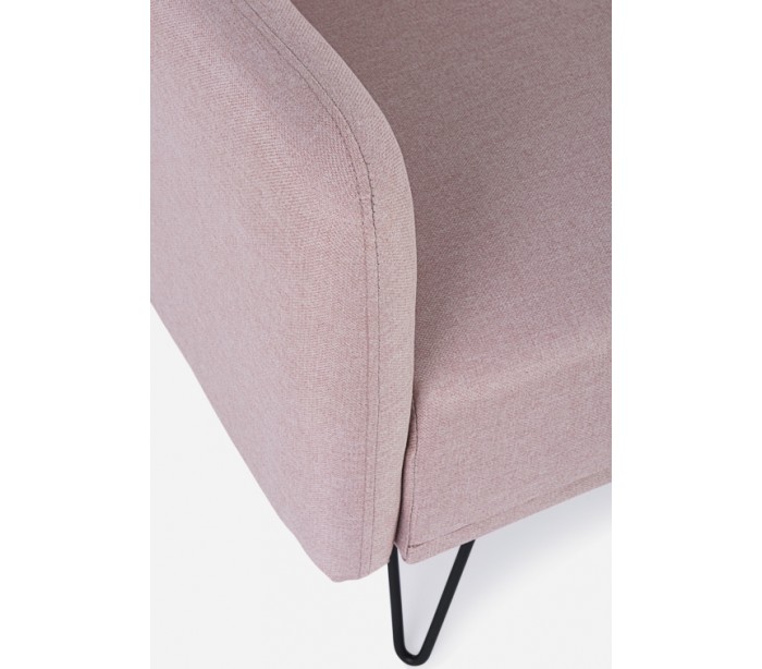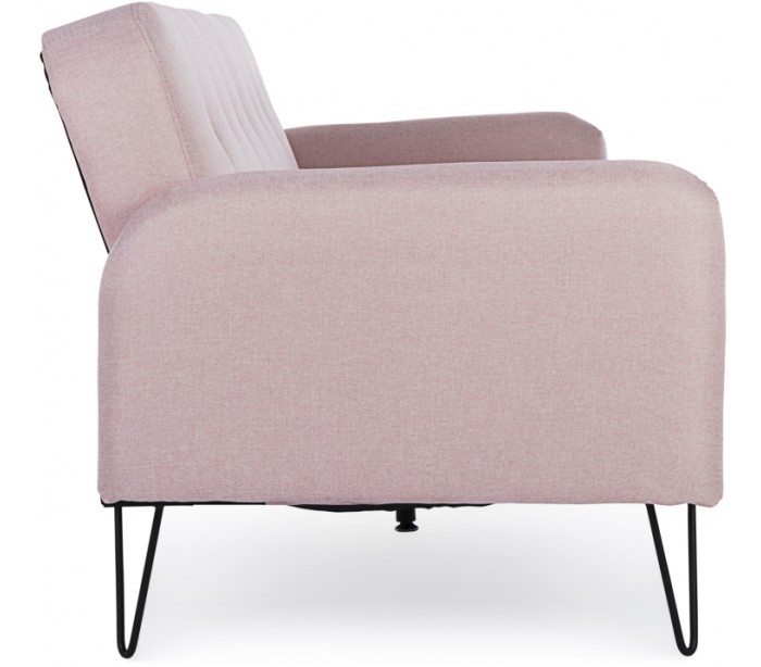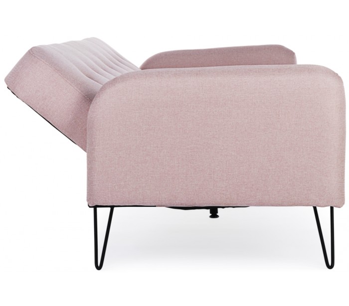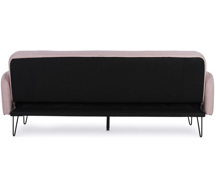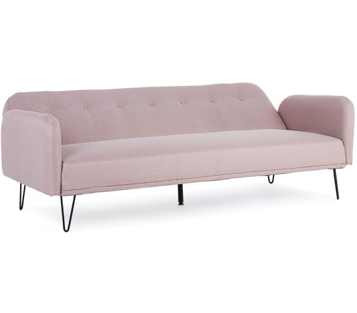 Sovesofa i et smukt udført design af pink polyester og ben i sortlakeret metal. Sofaen måler 81 cm i højden og 200 cm i bredden. Siddehøjden er 43 cm. Udslået måler sofaen 200 x 120 cm (inkl. armlæn = tykkelse cirka 8 cm pr. armlæn).