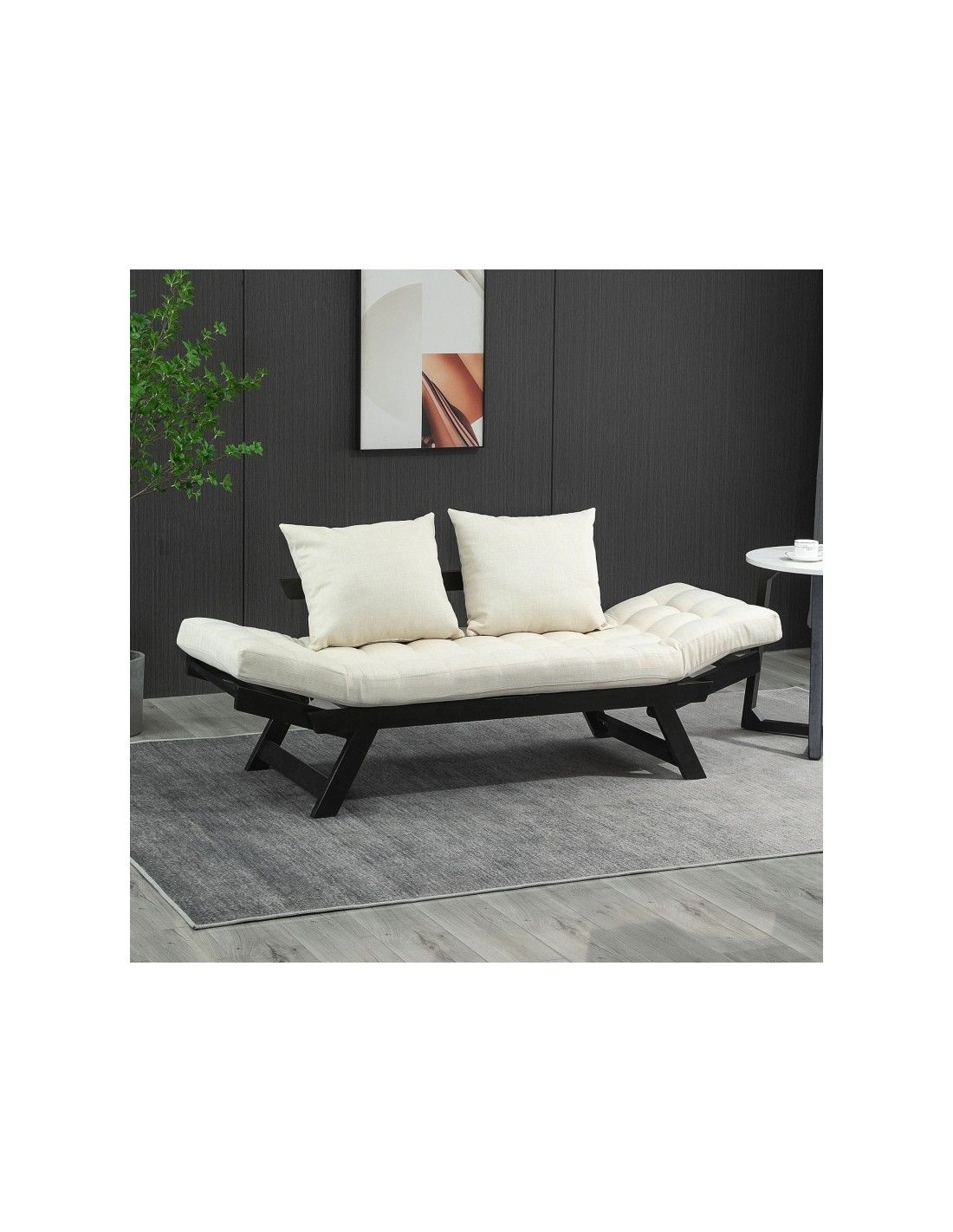 Sovesofa Daybed i egetræ og polyester B181 cm - Sort/Creme