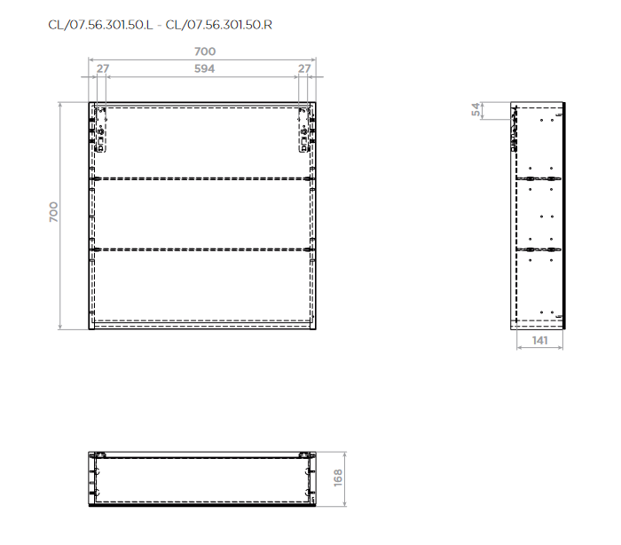 MATCH ME venstrevendt spejlskab 70 x 70 cm - Hvid højglans/Klar