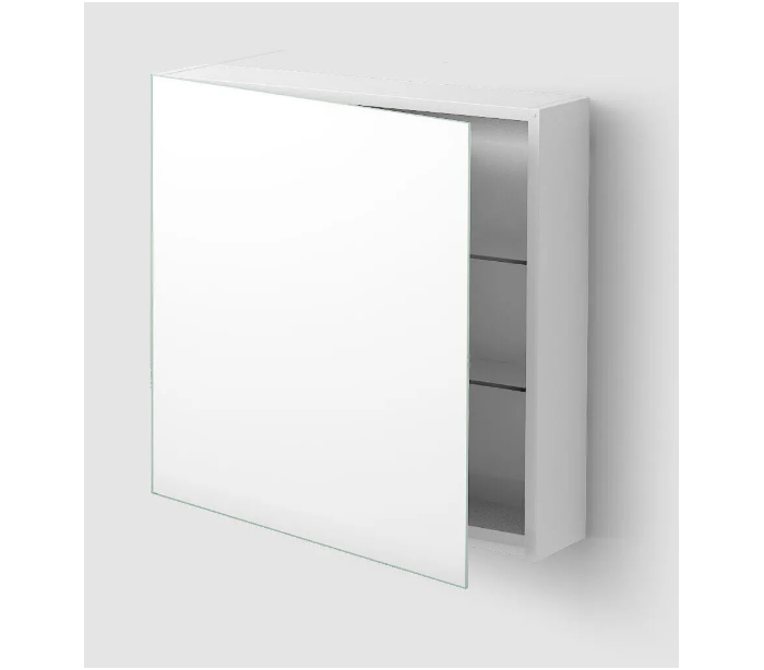 Spejlskab udført i et design i hvid højglans melamin og spejlfront. Spejlskabet måler 70 cm i højden og 70 cm i bredden. Spejlet er venstrevendt.