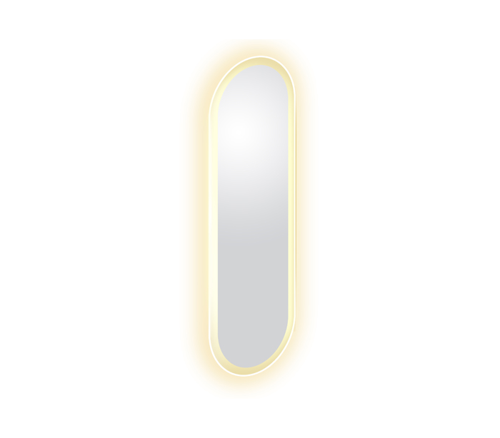 Vægspejl udført i et design af hvid satineret med 2700K LED belysning og IP44 beskyttelsesgrad. Spejlet måler 90 cm i højden og 28 cm i bredden.