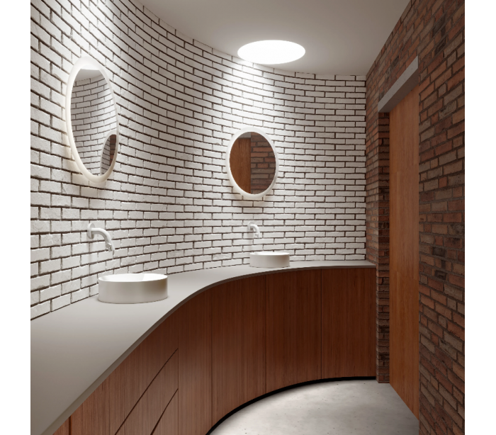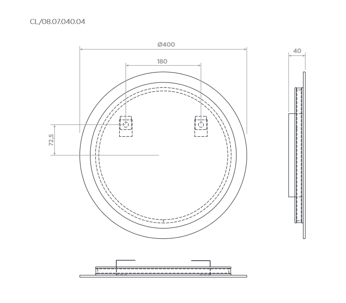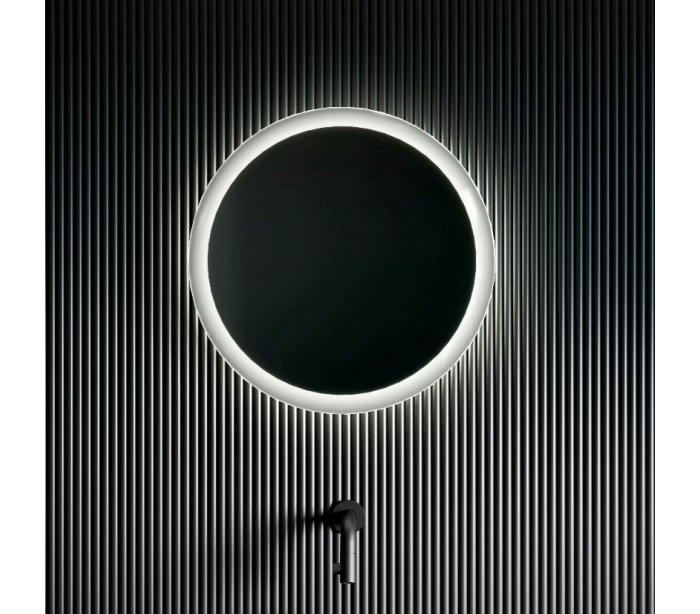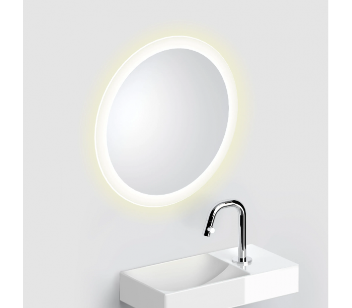 Rundt vægspejl udført i et design af hvid satineret med 2700K LED belysning og IP44 beskyttelsesgrad. Spejlet måler 40 cm i diameter.