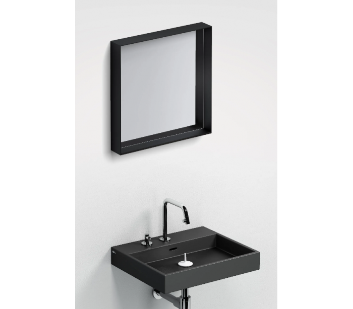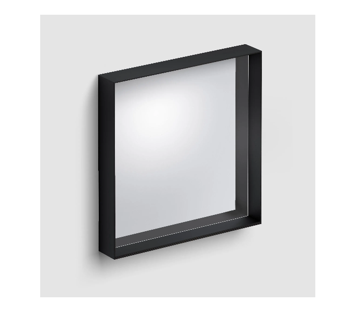 Vægspejl udført i et design af mat sort ramme. Spejlet måler 50 x 50 cm i højde og bredde.
