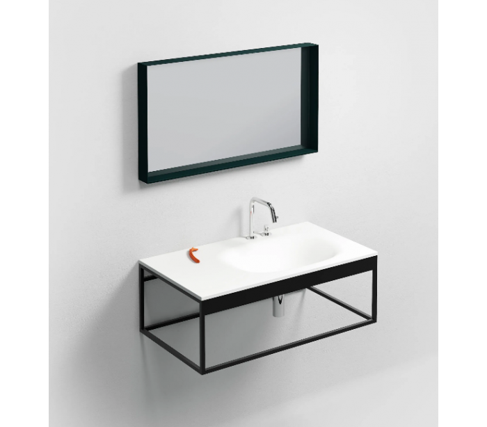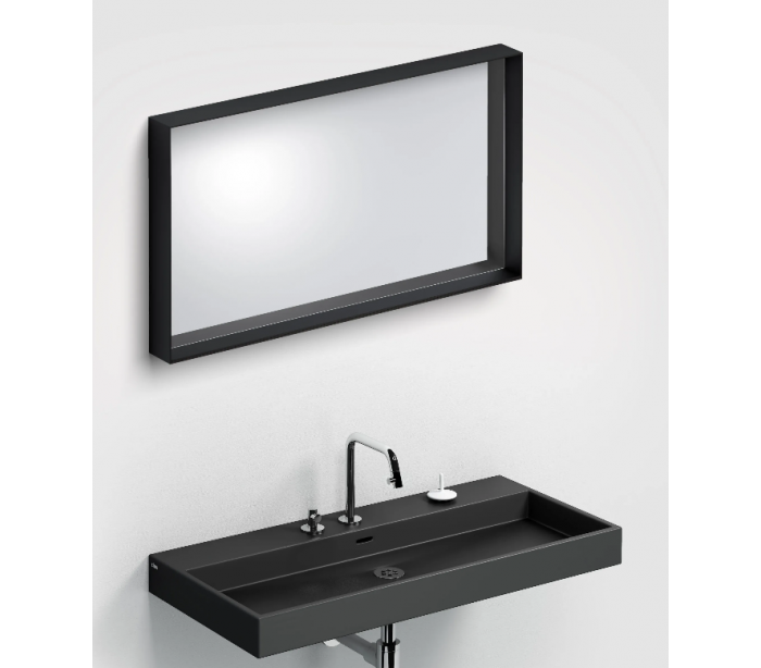 Vægspejl udført i et design af mat sort ramme. Spejlet måler 50 x 90 cm i højde og bredde.