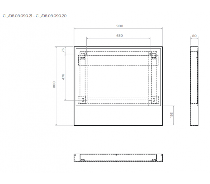 Vægspejl udført i et design med LED belysning (udskifteligt) og IP44 beskyttelsesgrad. Spejlet måler 80 cm i højden og 90 cm i bredden.