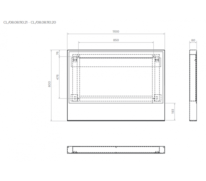 Vægspejl udført i et design med LED belysning (udskifteligt) og IP44 beskyttelsesgrad. Spejlet måler 80 cm i højden og 110 cm i bredden.