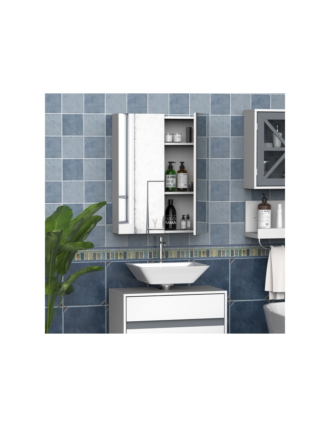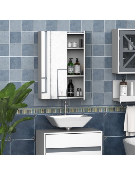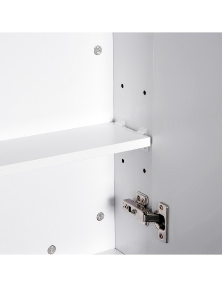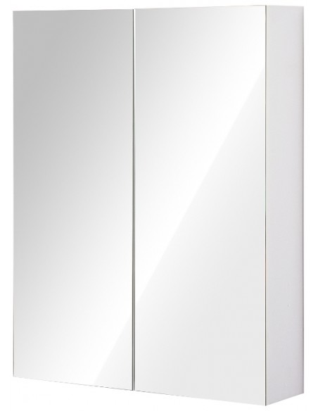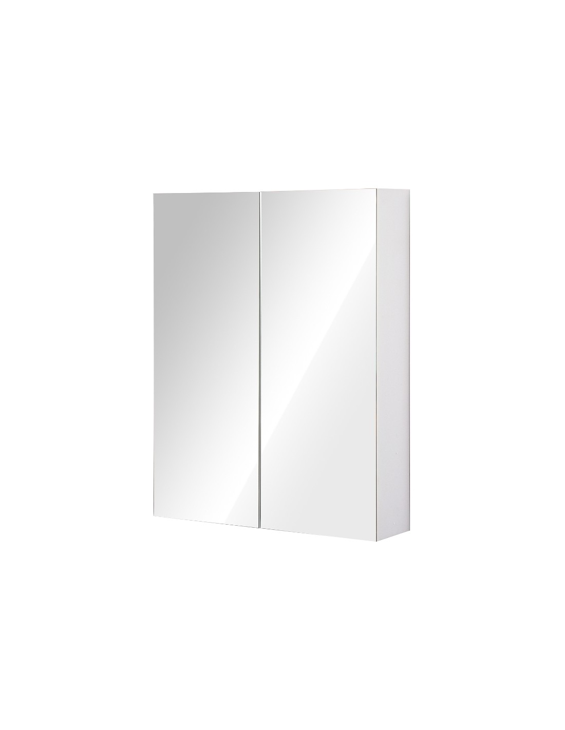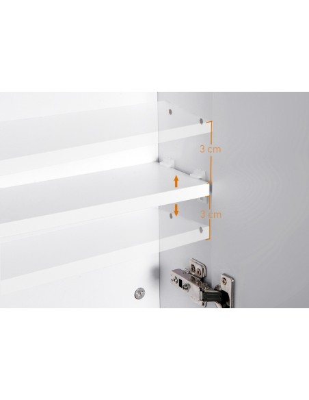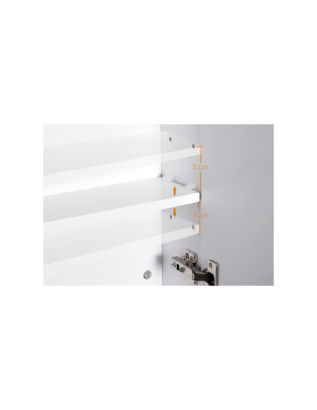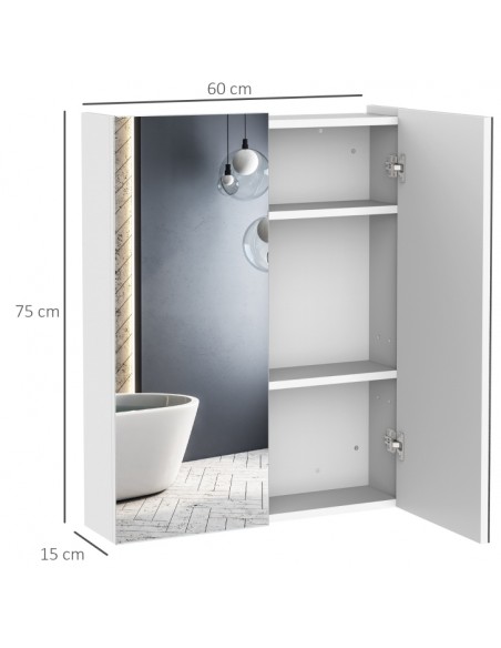 Spejlskab til badeværelset med 3 hylderum med justerbare hylder (3 cm). Spejlskabet er udført i MDF og glas og måler 75 x 60 cm i højde og bredde.