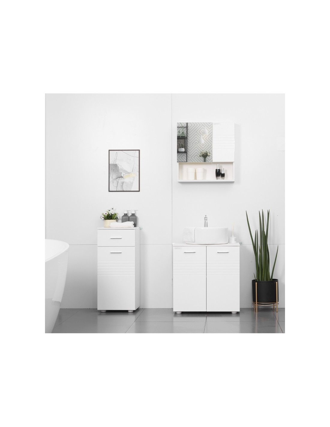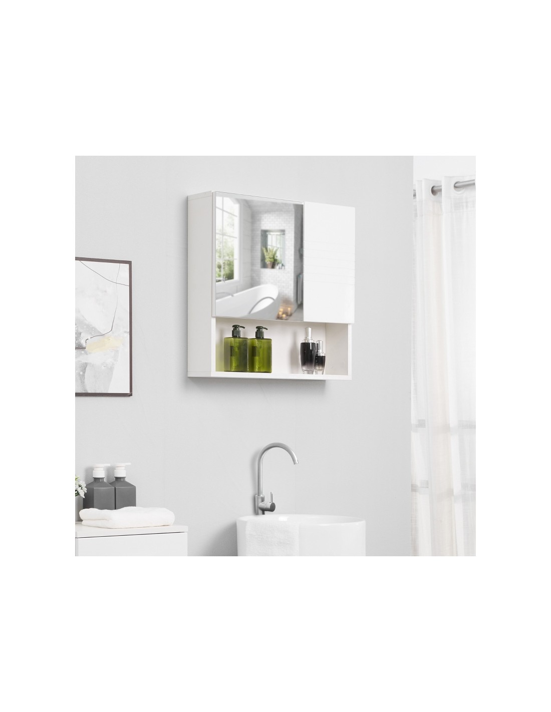 Spejlskab til badeværelset i møbelplade og glas 54 x 55 cm - Hvid