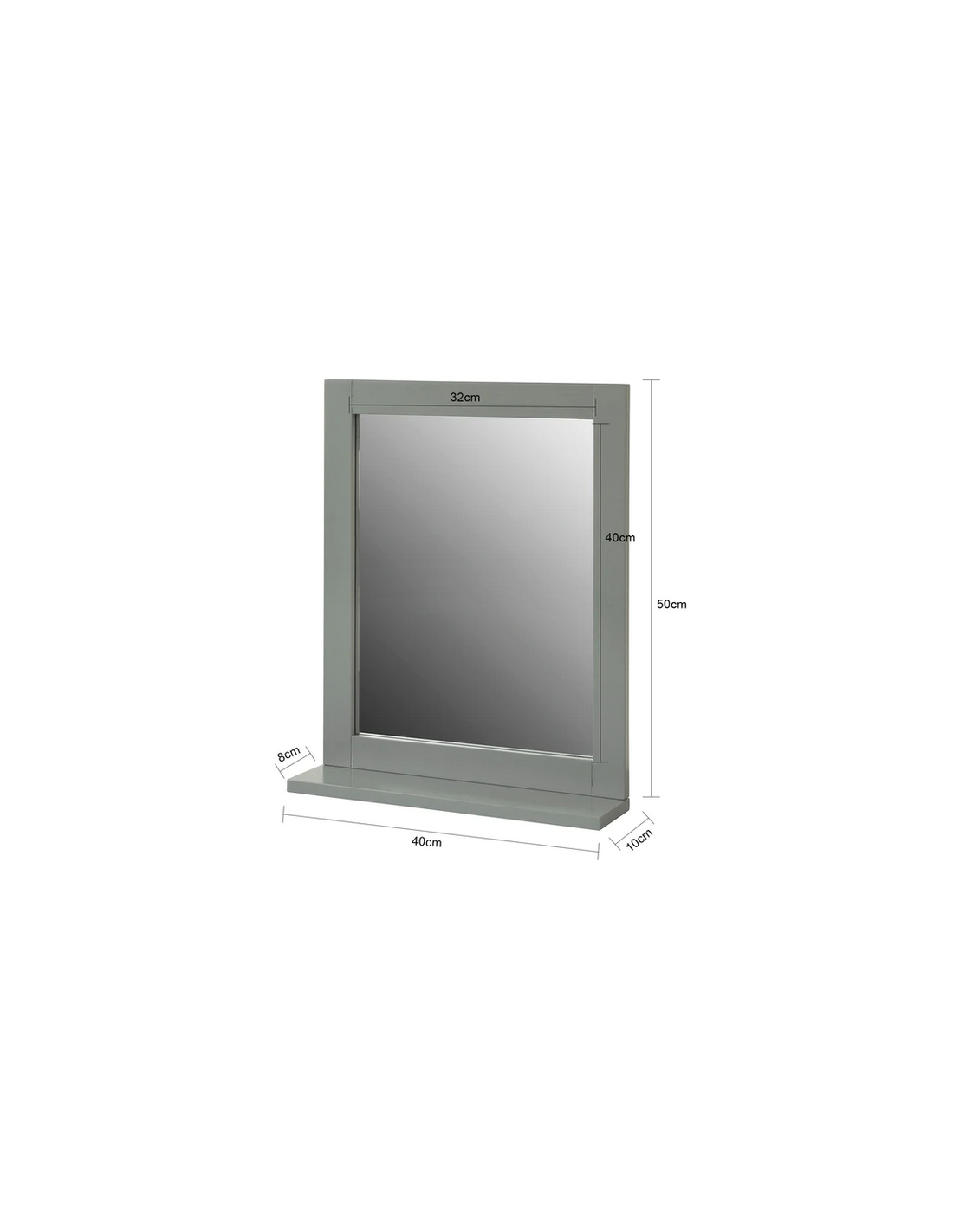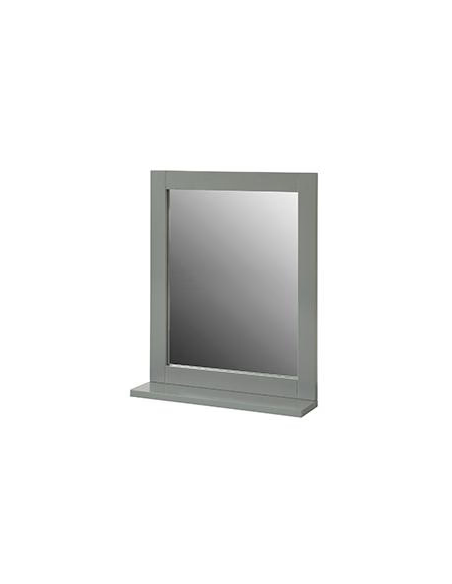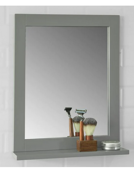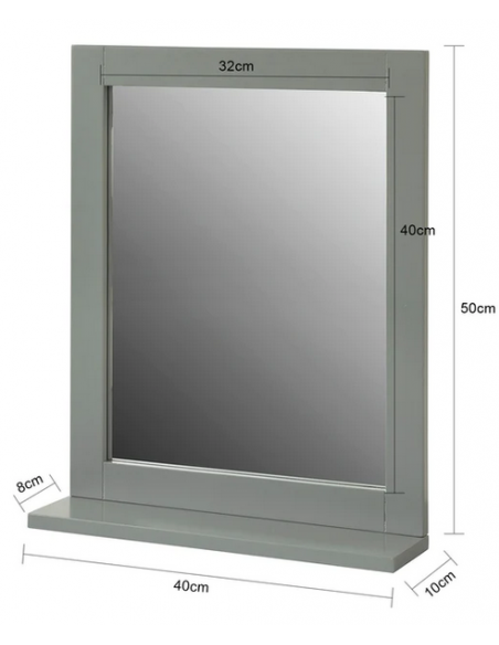 Spejl til badeværelset, udført i et design af grå møbelplade. Spejlet måler 50 cm i højden og 40 x 10 cm i bredde og dybde.