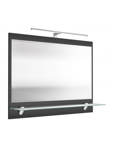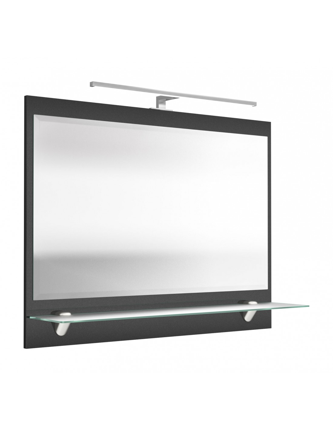 Spejl med 8W LED lampe i mdf og glas H68 x B90 cm - Antracit højglans