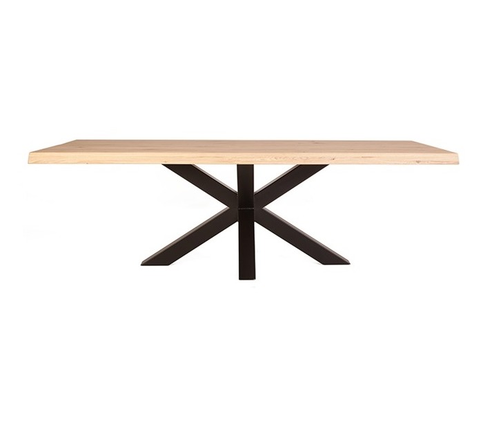 Spisebord i et rustikt design, fremstillet med bordplade i let lakeret massivt egetræ og stel i sortlakeret metal. Spisebordet måler 300 x 100 cm i bredde og dybde. Vi kan anbefale at efterlakere bordet.