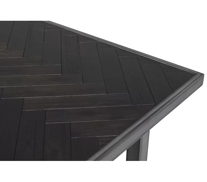 Spisebord i et industrielt design, fremstillet med bordplade i sortlakeret akacietræ og stel i metal. Spisebordet måler 240 x 100 cm i bredde og dybde.