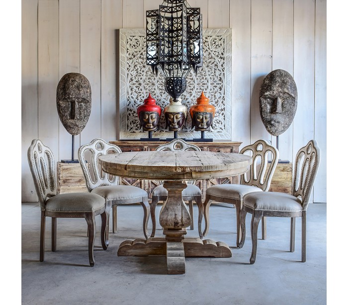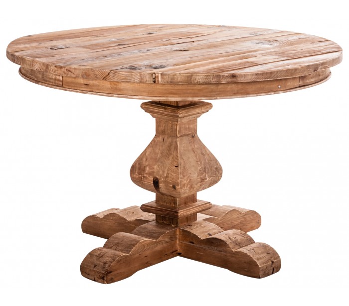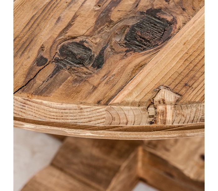 Spisebord i et rustikt design, fremstillet i genanvendt fyrretræ. Spisebordet måler 83 cm i højden og 120 cm i diameter. Bemærk venligst, at der jf. det rustikke design, kan være små ujævnheder.