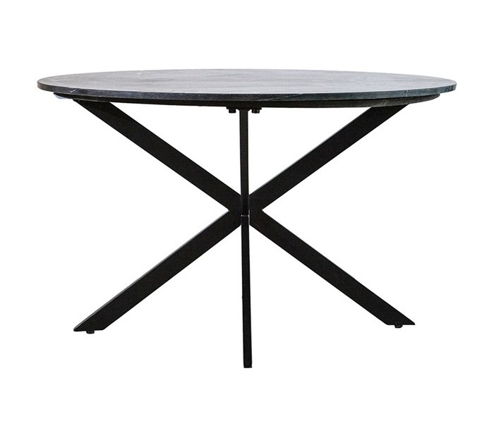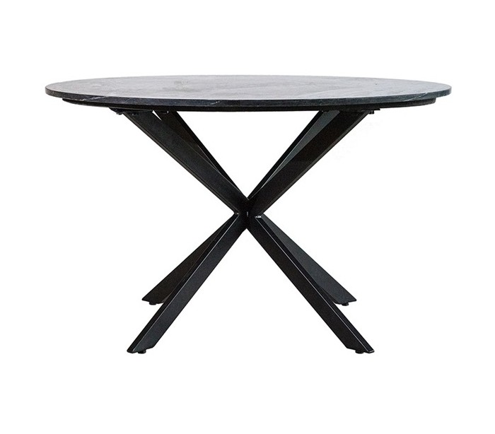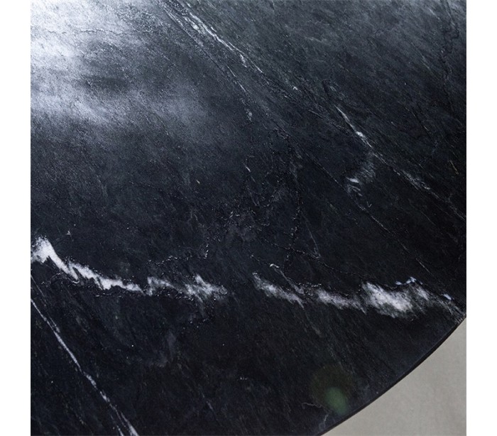 Rundt spisebord i et moderne design, fremstillet i sortlakeret metal og sort marmor. Spisebordet måler 78 cm i højden og 130 cm i diameter.