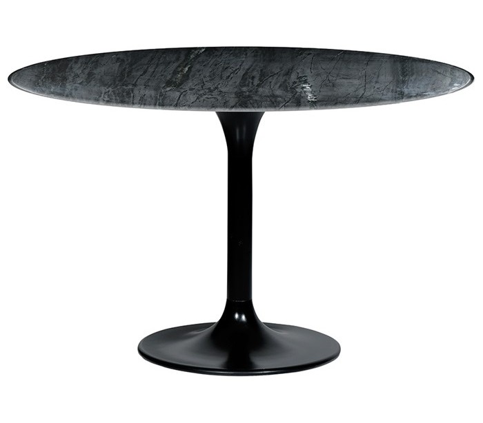 Rundt spisebord i et moderne design, fremstillet i sortlakeret metal og sort marmor. Spisebordet måler 76 cm i højden og 120 cm i diameter.