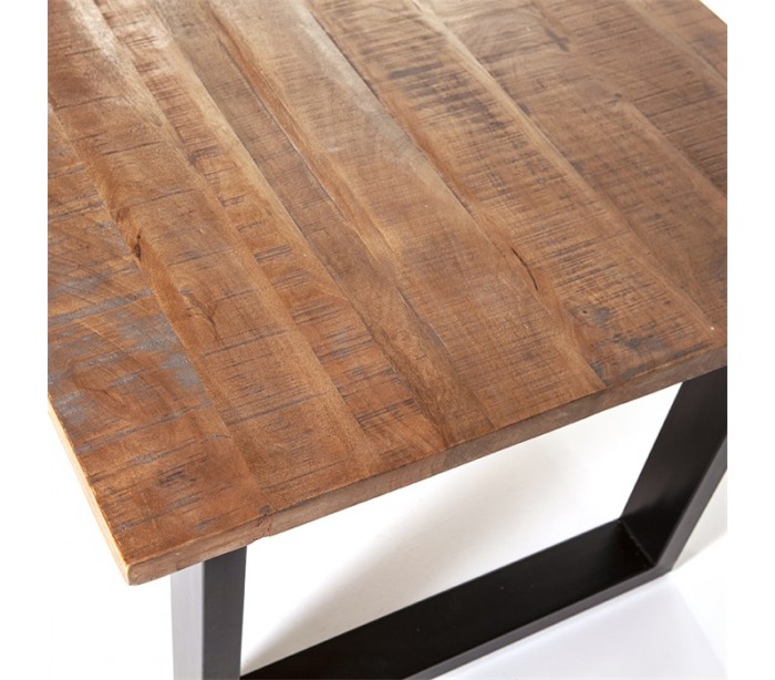 Spisebord i et rustikt design, fremstillet i brunlakeret mangotræ og sortlakeret metal. Spisebordet måler 76 cm i højden og 300 x 100 cm i bredde og dybde.
