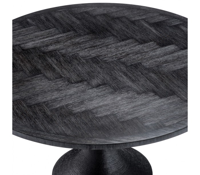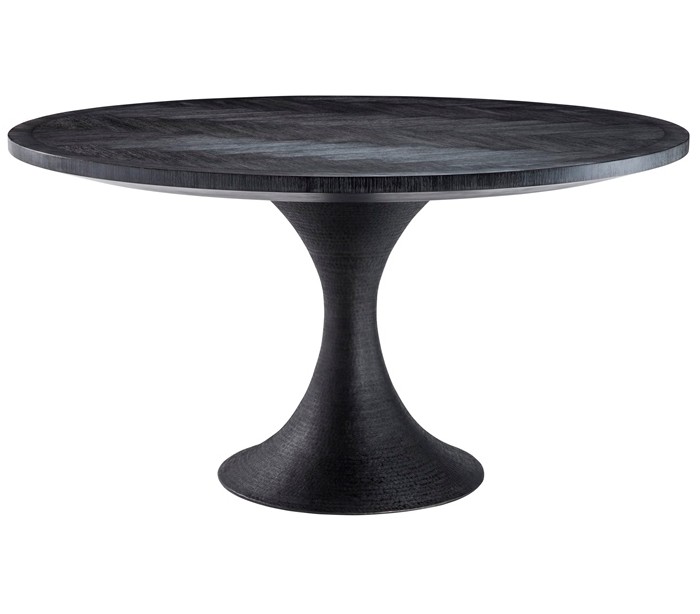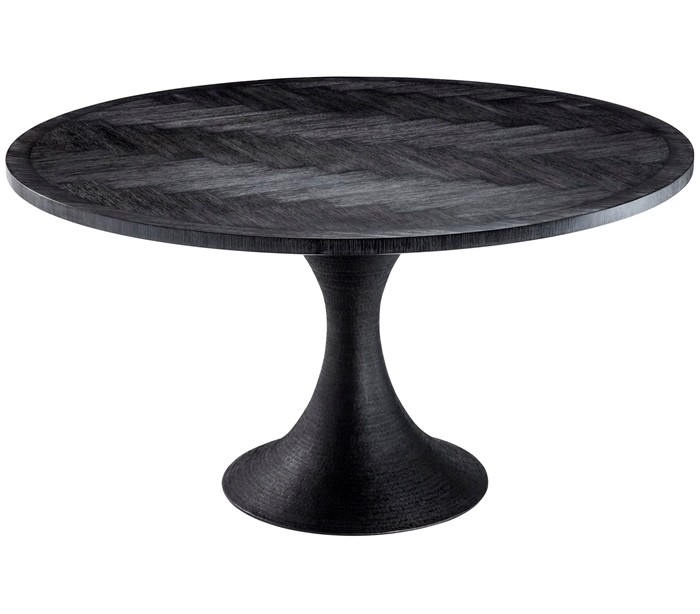 Eichholtz Melchior spisebord i et moderne udført design af charcoal farvet egetræ, mahognitræ og egetræsfinér. Spisebordet måler 76 cm i højden og 140 cm i diameter.