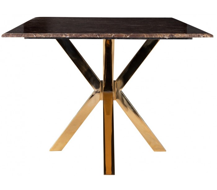 Spisebord i et design fra hollandske Richmond Interiors. Spisebordet er fremstillet i guldfarvet stål og med bordplade i brun marmor. Bordet måler 200 x 100 cm i bredde og dybde og 77 cm i højden.