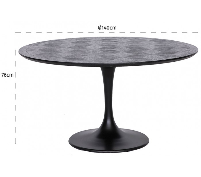 Spisebord i et design fra hollandske Richmond Interiors. Spisebordet er fremstillet sortlakeret egetræ og ben i sortlakeret jern. Bordet måler 140 cm i diameter og 76 cm i højden.