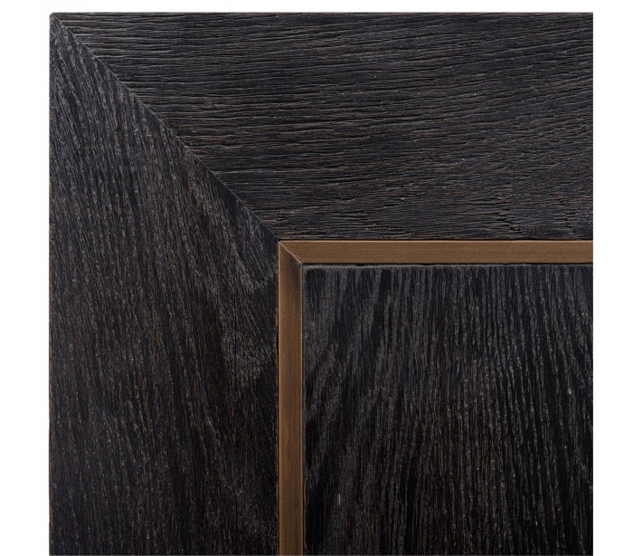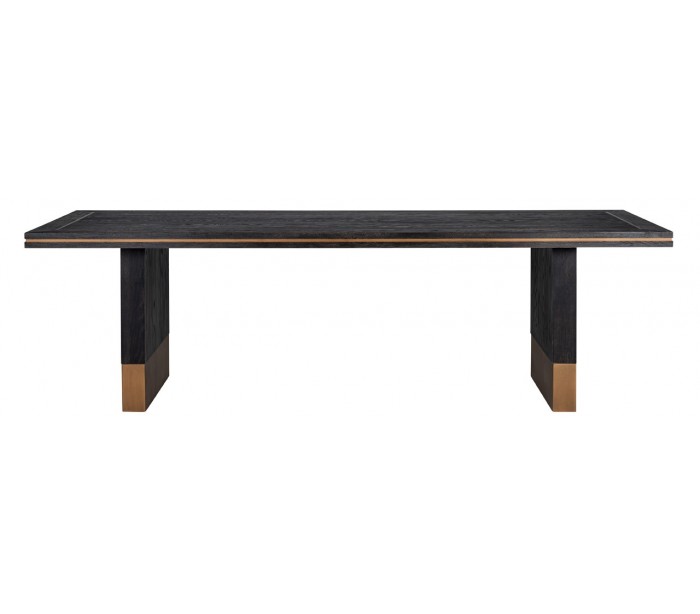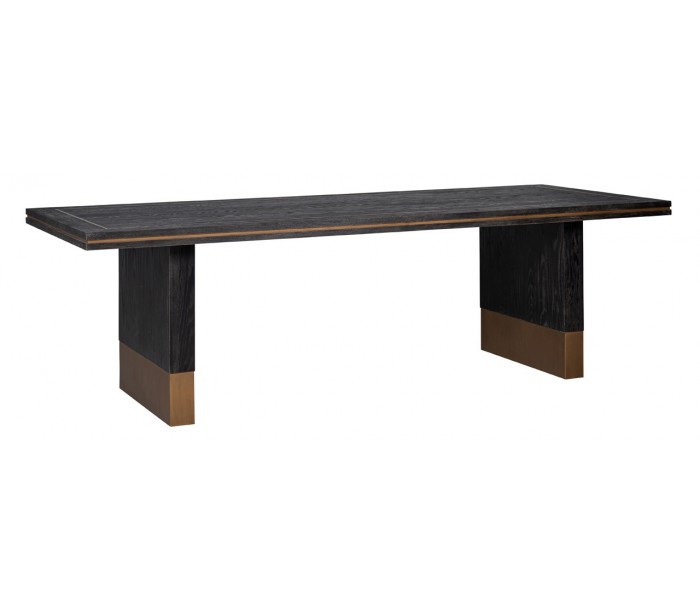 Spisebord i et design fra hollandske Richmond Interiors. Spisebordet er fremstillet i sort egetræsfinér og antik guldfarvet stål og måler 190 x 100 cm i bredde og dybde og 78 cm i højden.