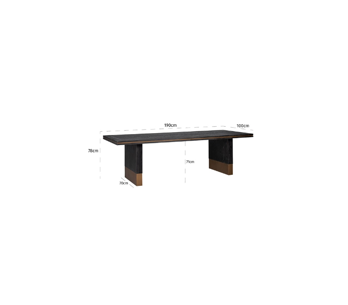 Hunter spisebord i egetræsfinér og stål 190 x 100 cm - Sort/Antik guld