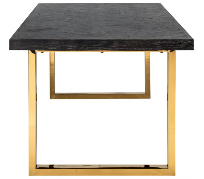 Spisebord i et design fra hollandske Richmond Interiors. Spisebordet er fremstillet i sortlakeret egetræ og guldfarvet stål og måler 180 x 90 cm i bredde og dybde og 77 cm i højden.