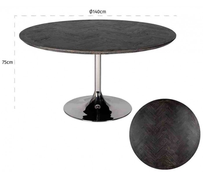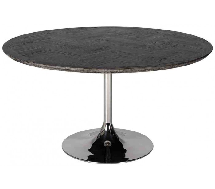 Spisebord i et design fra hollandske Richmond Interiors. Spisebordet er fremstillet i sortlakeret egetræ og sølvfarvet stål og måler 140 cm i diameter og 75 cm i højden.