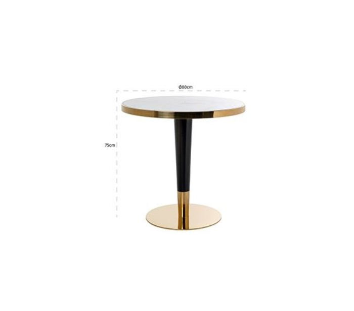 Bistrobord i et design fra hollandske Richmond Interiors. Bordet er fremstillet i sort og guldfarvet metal og hvid marmor og måler 80 cm i diameter og 75 cm i højden.