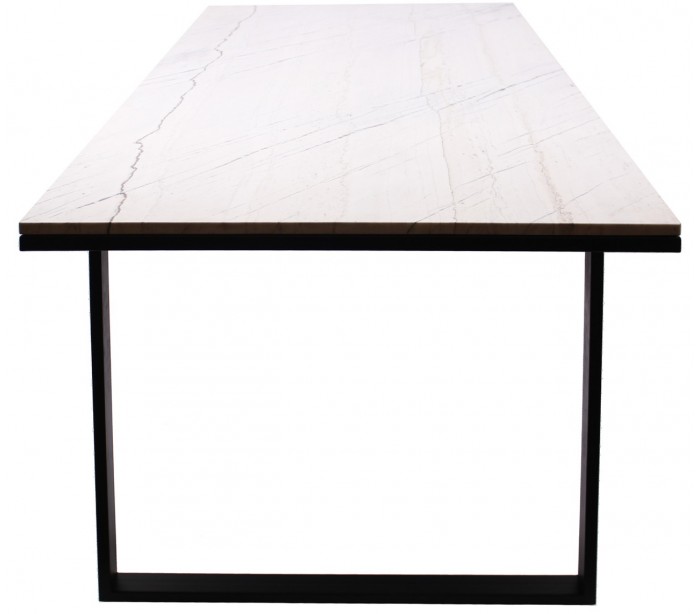 Lexington spisebord i marmor og jern 200 x 94 cm - Sort/Hvid marmor