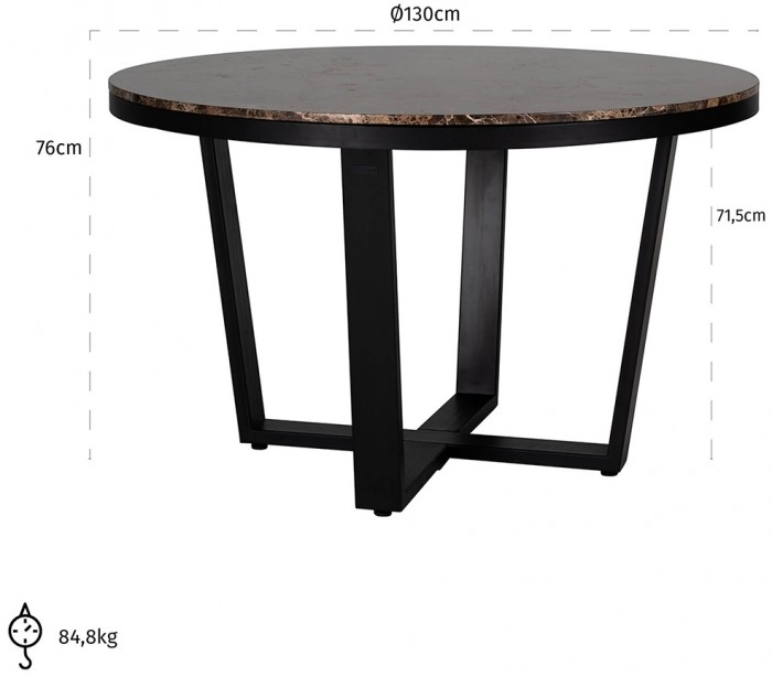 Dalton rundt spisebord i marmor og jern Ø130 cm - Sort/Brun marmor