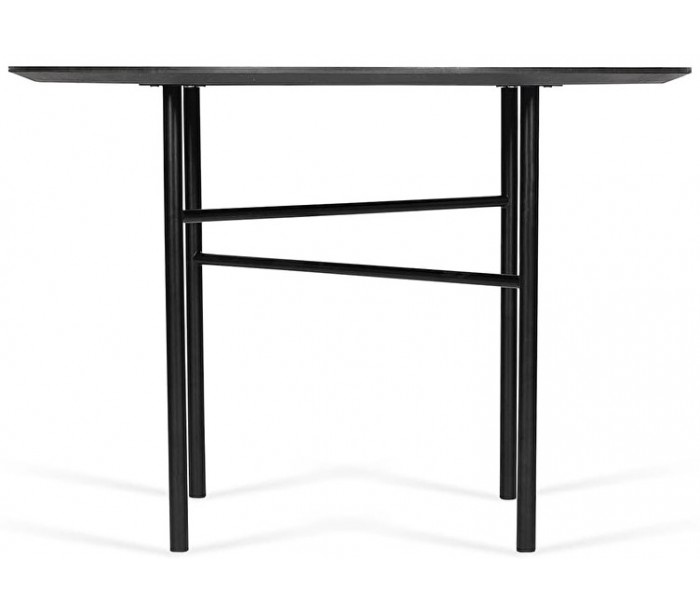 Spisebord i et design fremstillet af laminat og lakeret stål. Spisebordet måler 110 cm i diameter og 74 cm i højden.