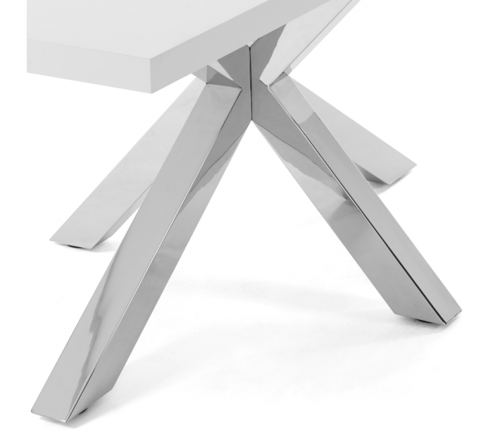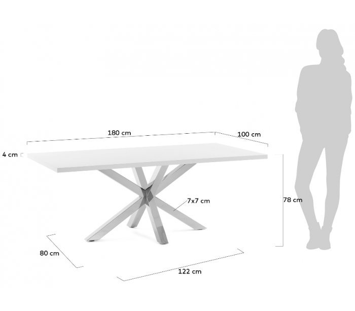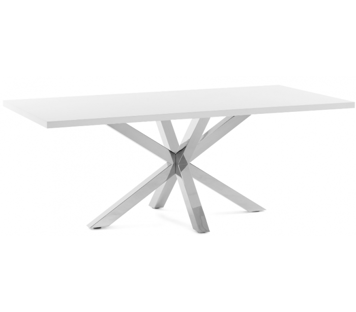 Spisebord i et design fra LaForma. Bordet er fremstillet med stel i rustfri stål og med bordplade i hvidfolieret melamin. Bordet måler 78 cm i højden og 180 x 100 cm i bredde og dybde.