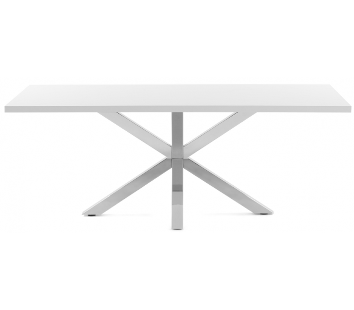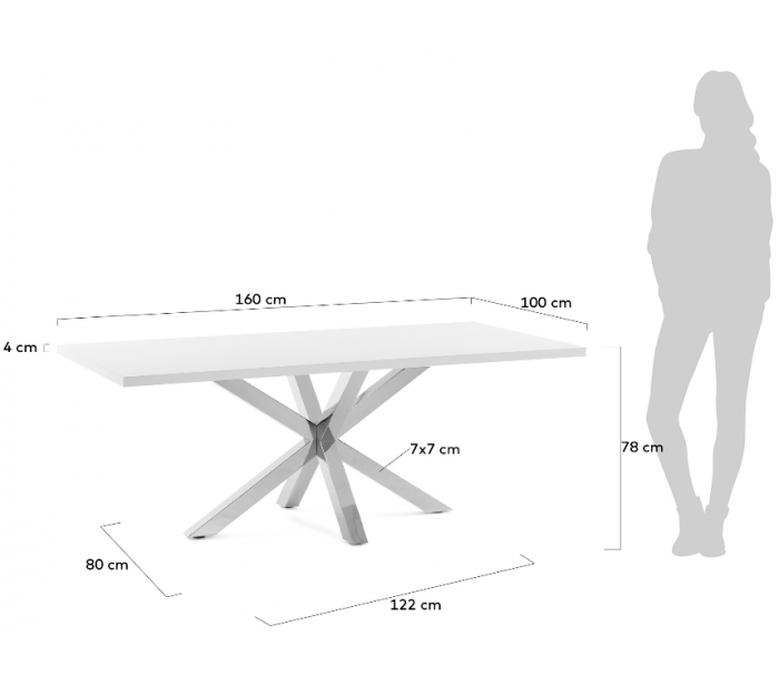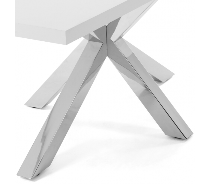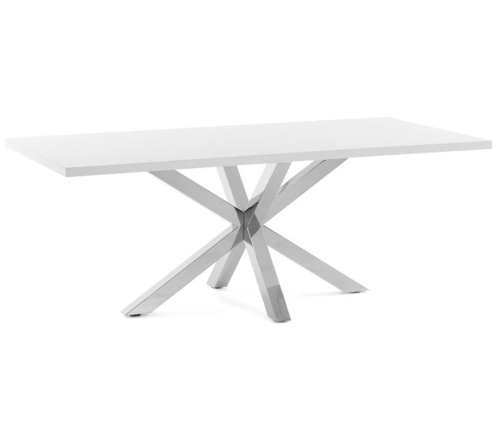 Spisebord i et design fra LaForma. Bordet er fremstillet med stel i rustfri stål og med bordplade i hvidfolieret melamin. Bordet måler 78 cm i højden og 160 x 100 cm i bredde og dybde.