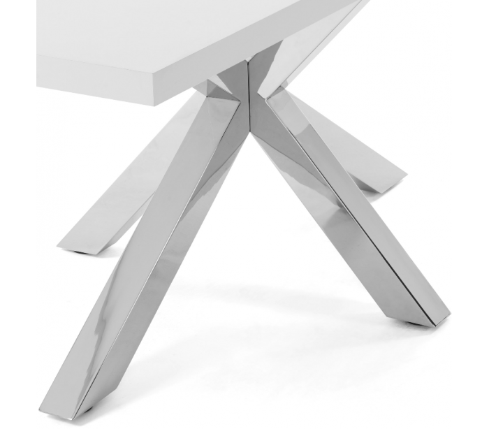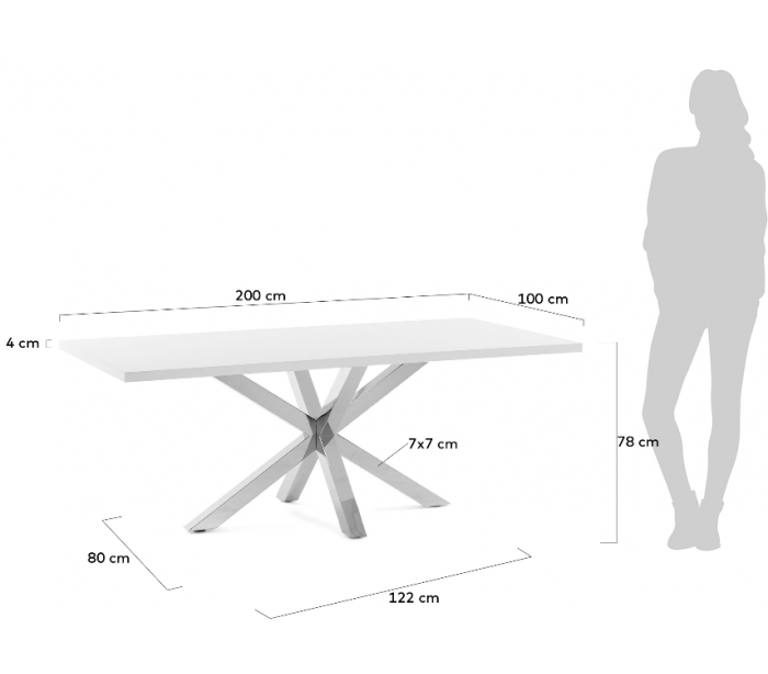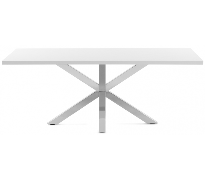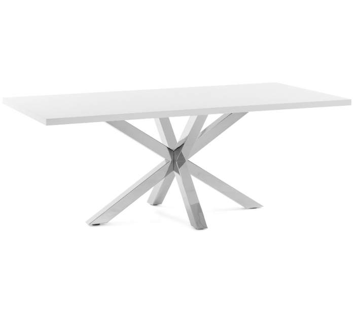 Spisebord i et design fra LaForma. Bordet er fremstillet med stel i rustfri stål og med bordplade i hvidfolieret melamin. Bordet måler 78 cm i højden og 200 x 100 cm i bredde og dybde.