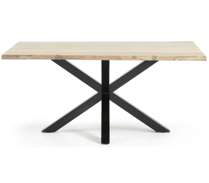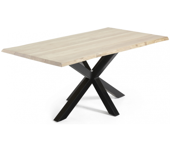 Spisebord i et design fra LaForma. Bordet er fremstillet med stel i sortlakeret stål og med bordplade i massiv bleget egetræ med naturkant/bølget kant. Bordet måler 78 cm i højden og 160 x 90 cm i bredde og dybde.