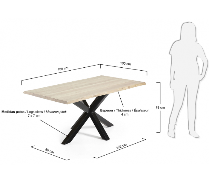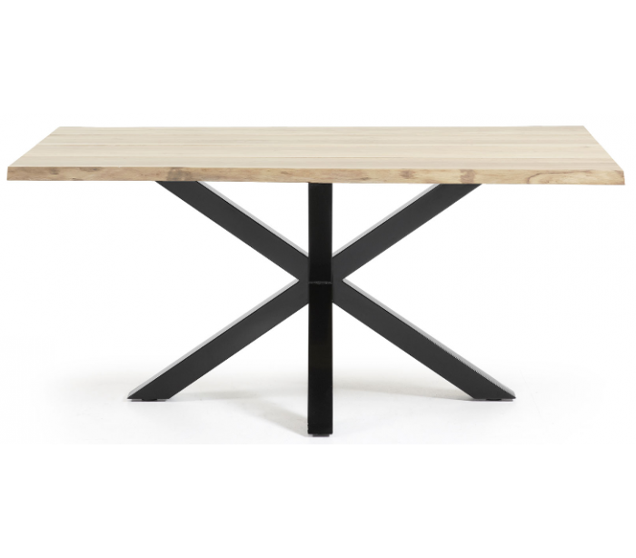 Spisebord i et design fra LaForma. Bordet er fremstillet med stel i sortlakeret stål og med bordplade i massiv bleget egetræ med naturkant/bølget kant. Bordet måler 78 cm i højden og 180 x 100 cm i bredde og dybde.