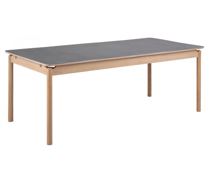 Spisebord udført i et design med bordplade af gråsort keramisk belagt mdf og med bordben i massiv egetræ. Spisebordet måler 76 cm i højden og 200 x 95 cm i bredde og dybde. Bordet er forberedt til tillægsplader (tilkøb).