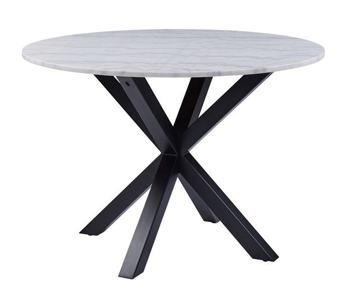 Spisebord udført i et design af sortlakeret metal og med bordplade i hvid marmor. Spisebordet måler 76 cm i højden og 110 cm i diameter.