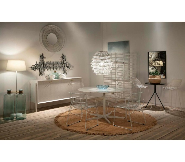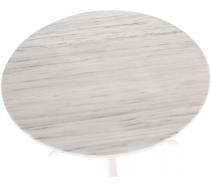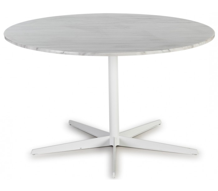 Rundt spisebord udført i et design af hvidlakeret stål og hvid marmor. Spisebordet måler 75 cm i højden og 125 cm i diameter.