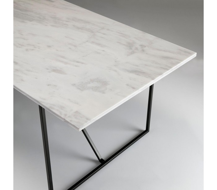 Spisebord udført i et design af sortlakeret stål og hvid marmor. Spisebordet måler 75 cm i højden og 210 x 90 cm i bredde og dybde.