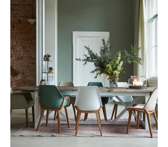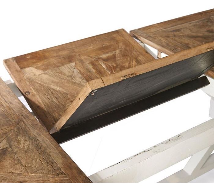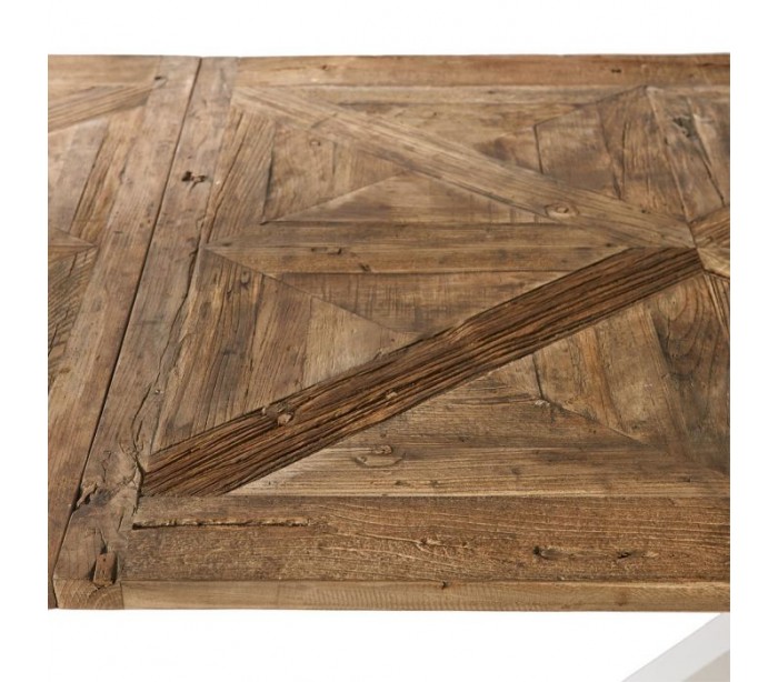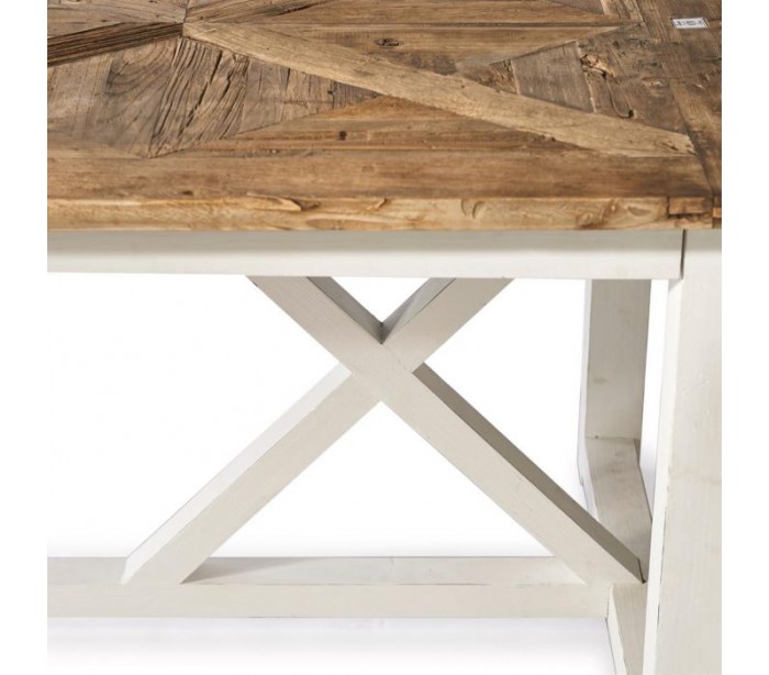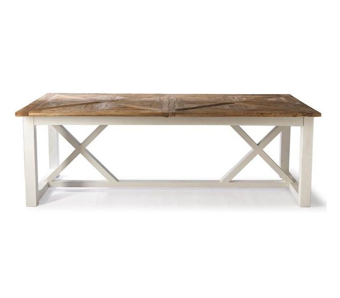 Spisebord i genanvendt elmetræ 230/300 x 100 cm - Antik hvid/Natur