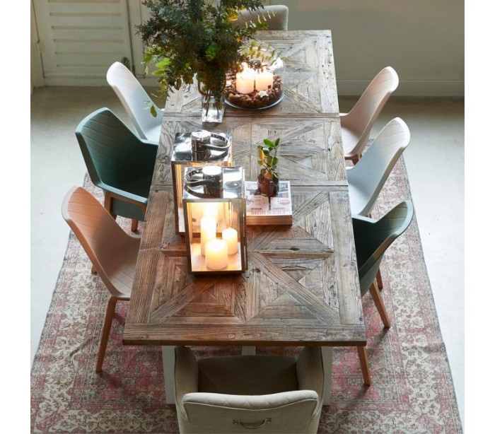 Spisebord fra Riviera Maison, udført i et rustikt design af massiv genanvendt elmetræ. Spisebordet måler 78 cm i højden og 230/300 cm i bredde og 100 cm i dybde.