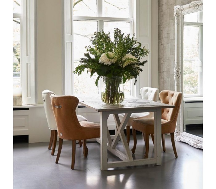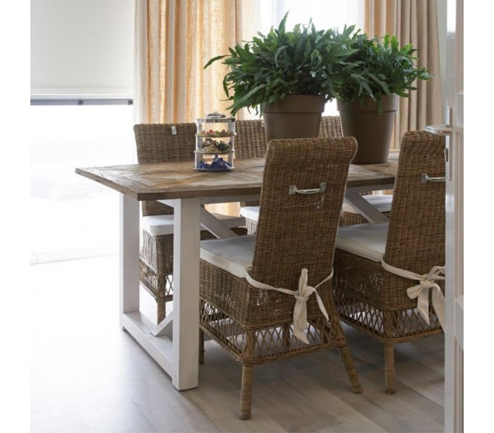 Spisebord fra Riviera Maison, udført i et rustikt design af massiv genanvendt elmetræ. Spisebordet måler 78 cm i højden og 180 cm i bredde og 90 cm i dybde.